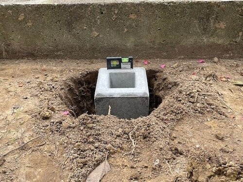 アルミフェンスの土台、基礎となる埋込作業工事です。