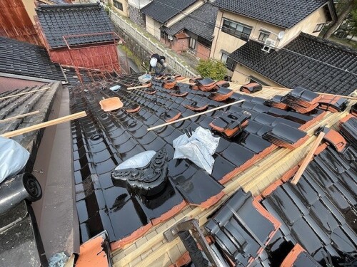 まずはじめに、古い瓦を撤去します。ゆっくりと綺麗に外し