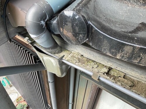 途中、長年の雨樋にはゴミや砂が堆積・・・